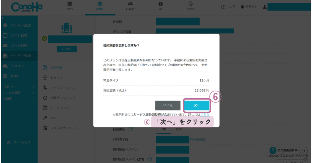 ConoHa WINGの更新クーポンを使うには手動更新が必要