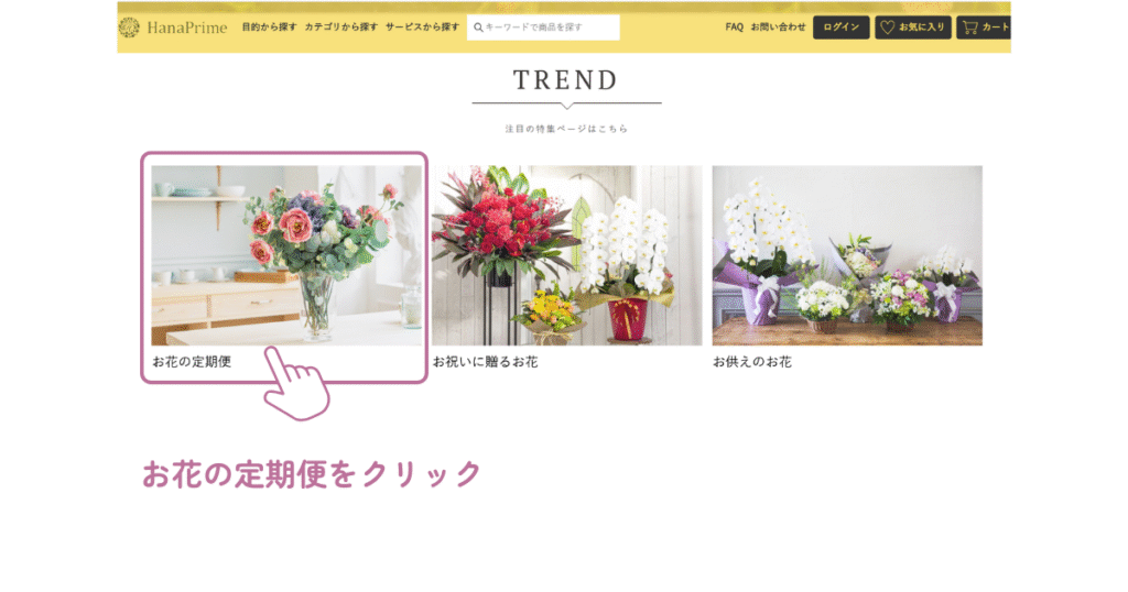 「お花の定期便」をクリックし、「お花の定期便」のページを開きます。